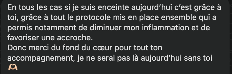 Si une grossesse débute pendant l’accompagnement, on ajuste ensemble. On travaille alors à la stabiliser, à diminuer les risques du 1er trimestre, et surtout à accompagner toutes les émotions et les questions qui te traversent à ce moment la (stress, angoisses, arrêts de grossesse, douleurs, maux de grossesse …)